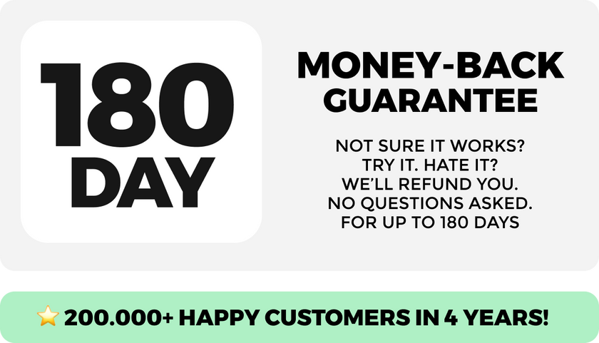 We proudly offer a 180-day money-back guarantee. It’s one of the longest and most customer-friendly policies in the industry.